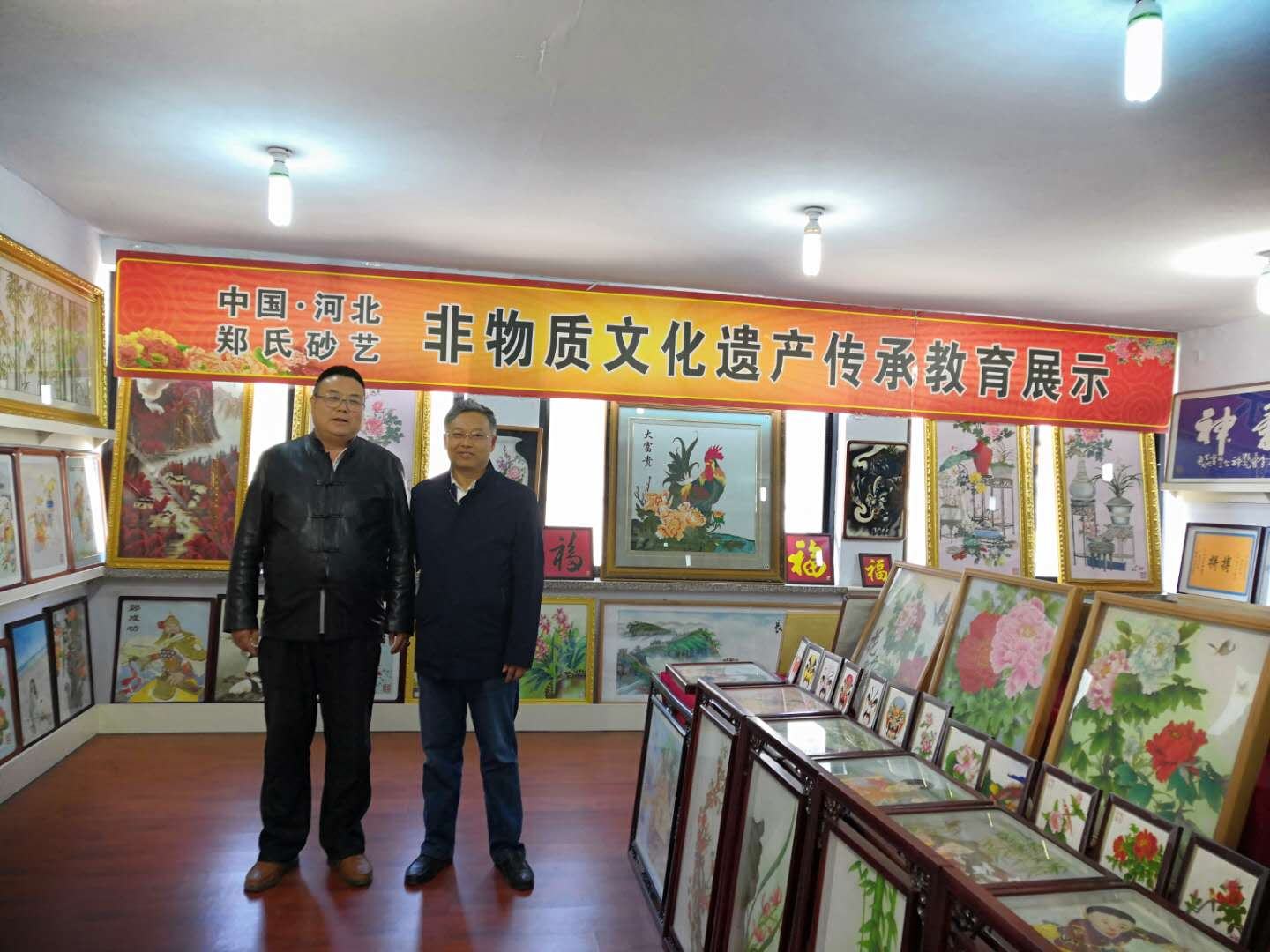 2019年5月6日,縣政協(xié)辦公室主任馬建軍來(lái)到鄭氏砂藝調(diào)研考察。馬主任在鄭總的陪同下考察了砂畫(huà)制作車(chē)間、書(shū)畫(huà)裝裱車(chē)間、榮譽(yù)展覽室并參觀了鄭氏砂藝非遺文化傳承教育展廳。