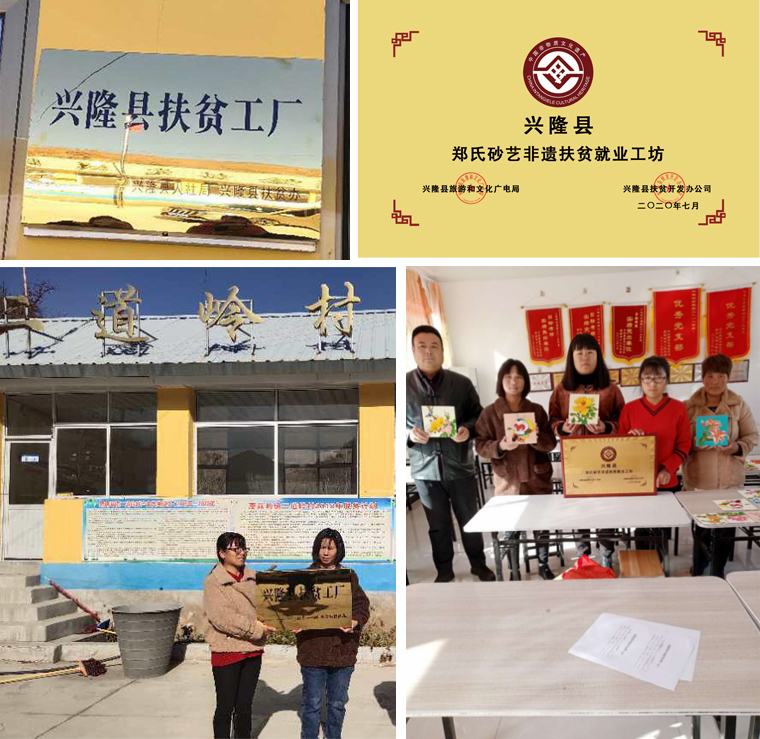 2020年11月6日。由興隆縣人力資源和社會(huì)保障局、縣扶貧辦頒發(fā)的“興隆縣扶貧工廠”、興隆縣旅游和文化廣電局、興隆縣扶貧開發(fā)辦公室,頒發(fā)的“興隆縣鄭氏砂藝非遺扶貧就業(yè)工坊”,在蘑菇峪鎮(zhèn)二道嶺村正式掛牌營(yíng)業(yè)。標(biāo)志著該村扶貧就業(yè)工坊步入正規(guī)化、規(guī)范化軌道。興隆縣就業(yè)局張新主任、鄭氏砂藝文化有限公司董事長(zhǎng)鄭鐵軍、蘑菇峪鎮(zhèn)包村干部以及村干部等出席掛牌儀式。