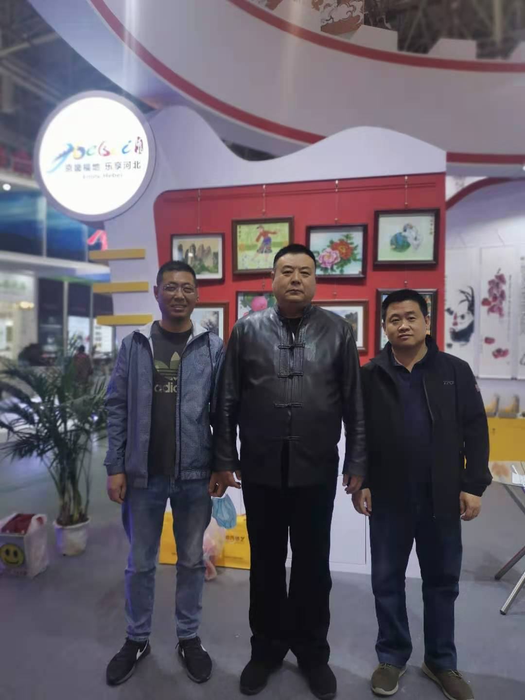 河北省文化和旅游廳文化產(chǎn)業(yè)發(fā)展處暴中憲處長(zhǎng)(中間)、馬運(yùn)飛主任(右一)、鄭鐵軍董事長(zhǎng)(左一)