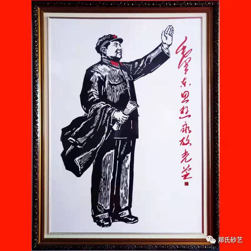 6月28日,鄭氏砂藝應(yīng)邀參加了興隆縣統(tǒng)戰(zhàn)系統(tǒng)“聽黨話、感黨恩、跟黨走”的黨史學(xué)習(xí)教育,展出了大幅砂畫作品《毛澤東思想永放光芒》。在建黨100周年之際,了解黨的歷史學(xué)習(xí)黨的歷史具有深遠而且重大的意義。中國共產(chǎn)黨從無到有,從小到大,到現(xiàn)在成為全世界最大的政黨,其歷史過程中的艱辛與坎坷都在歷史長河中銘記。