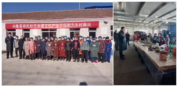 2021年11月,企業(yè)選址興隆縣李家營下臺子村原小學(xué)成立興隆縣鐵金研學(xué)基地,并結(jié)合當(dāng)?shù)剞r(nóng)村農(nóng)民的農(nóng)業(yè)種植情況,組織當(dāng)?shù)?03戶村民自愿聯(lián)合成立了農(nóng)民專業(yè)合作社,建立了鄭氏砂藝非遺文化產(chǎn)業(yè)升級助力鄉(xiāng)村振興就業(yè)工坊。在企業(yè)的引領(lǐng)下合作社展開了農(nóng)產(chǎn)品收購和初加工業(yè)務(wù),此舉不但解決了農(nóng)民的就業(yè)問題,也解決了農(nóng)產(chǎn)品的銷售問題,切實的帶動了當(dāng)?shù)厝罕娋徒蜆I(yè)、增收致富。