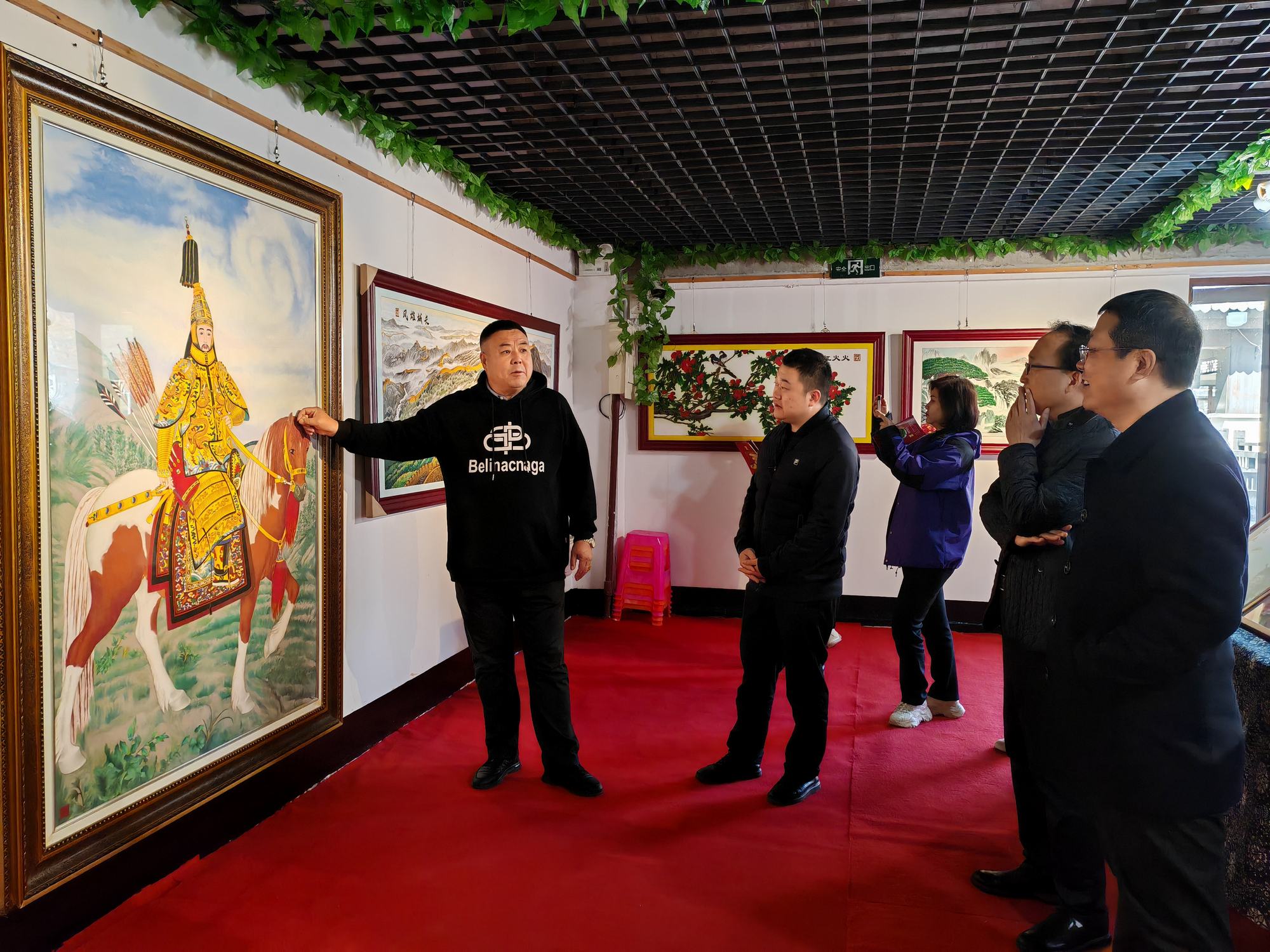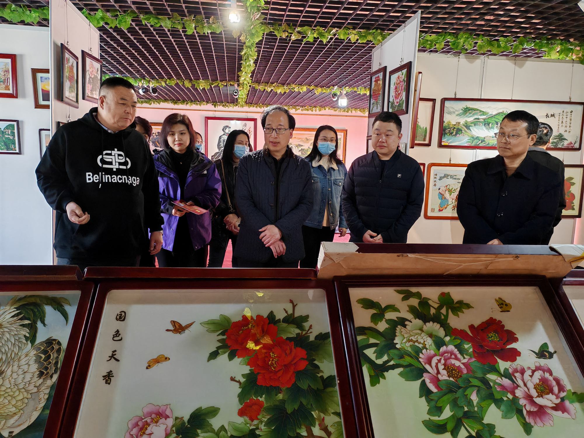 集乾釗主任一行在鄭鐵軍董事長(zhǎng)的陪同下參觀了鄭氏砂藝非遺展館,觀看了鄭氏砂藝創(chuàng)作的各類非遺砂畫作品,考察團(tuán)領(lǐng)導(dǎo)在長(zhǎng)城砂畫系列前駐足欣賞,對(duì)栩栩如生的長(zhǎng)城砂畫作品給予了高度贊譽(yù)。期間董事長(zhǎng)鄭鐵軍對(duì)近年來(lái)鄭氏砂藝非遺文化的發(fā)展情況進(jìn)行了簡(jiǎn)單介紹。集乾釗主任對(duì)鄭氏砂藝非遺文化的傳承和發(fā)展表示了充分肯定,并對(duì)鄭氏砂藝的傳統(tǒng)手工技藝給予高度評(píng)價(jià)。