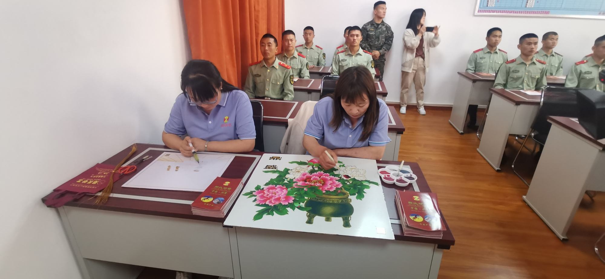 省級非物質(zhì)文化遺產(chǎn)“鄭氏砂藝(畫)”受邀參加了此次活動,并進(jìn)行了現(xiàn)場展演創(chuàng)作,為軍營官兵呈現(xiàn)精湛的鄭氏砂藝(畫)制作技藝,帶來了一場傳統(tǒng)藝術(shù)的“精神盛宴”。