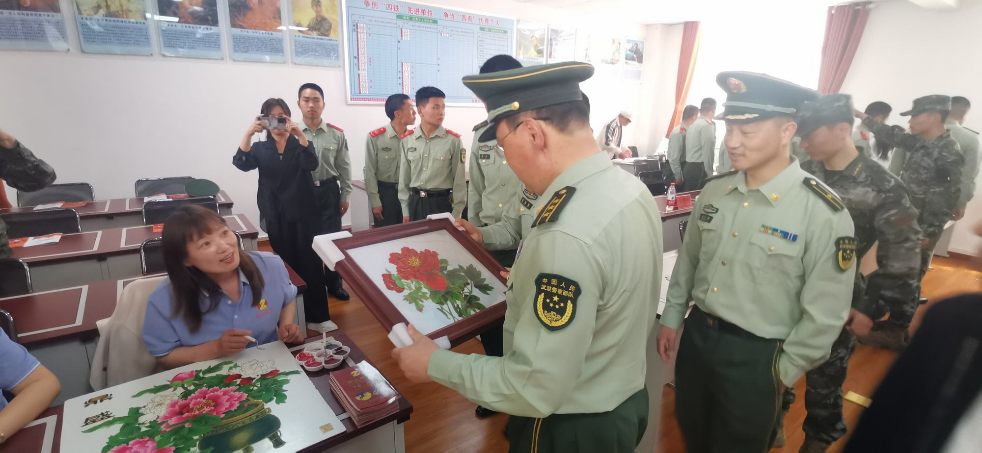 此外,代表一行還對當(dāng)?shù)氐能姞I進(jìn)行了慰問活動。他們?yōu)楣俦鴤兯蜕狭艘环赖纳八?畫)作品《牡丹》,表達(dá)了對他們辛勤工作和保衛(wèi)祖國的敬意和感謝之情。官兵們也表示非常感動和感激,認(rèn)為這種傳統(tǒng)文化的贈送不僅讓他們感受到了家鄉(xiāng)的溫暖,也增強(qiáng)了他們的文化自信心。