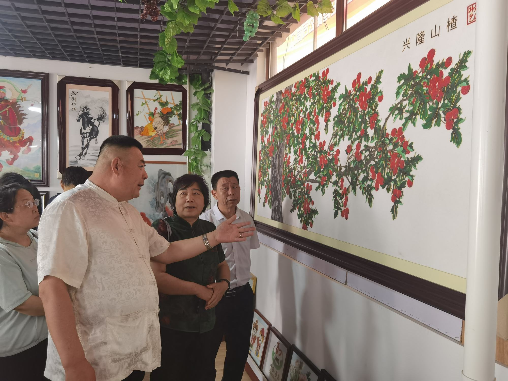 上午9時(shí)許,石俊鳳主席一行在鄭鐵軍主席的陪同下,參觀了鄭氏砂藝(畫(huà))非遺博物館。博物館展出了鄭氏砂藝多年來(lái)在傳承和發(fā)展中的非遺砂畫(huà)精品3000余幅,這些作品能清晰地反映出鄭氏砂藝在不同時(shí)期的技術(shù)特點(diǎn),同時(shí)也展現(xiàn)了鄭氏砂藝在非遺技藝和材料運(yùn)用的不斷提升。參觀過(guò)程中,鄭鐵軍主席如數(shù)家珍般地向大家介紹了館內(nèi)藏品,這些作品有的被各大博物館收藏,有的被其他國(guó)家作為國(guó)禮收藏,有的獲得了國(guó)家級(jí)獎(jiǎng)項(xiàng)等等。參觀結(jié)束后,石俊鳳主席表示:“鄭氏砂藝這些年的發(fā)展是有目共睹的,是承德市文化企業(yè)中發(fā)展較快、規(guī)模較大的,鄭氏砂藝的發(fā)展經(jīng)驗(yàn)是值得我們學(xué)習(xí)和借鑒的,祝愿鄭氏砂藝在今后的發(fā)展中更上一層樓。同時(shí)鄭氏砂藝(畫(huà))技藝是一項(xiàng)技術(shù)要求較高且畫(huà)面精美的非遺藝術(shù),非常值得大家學(xué)習(xí)和交流,增加大家對(duì)鄭氏砂藝非遺文化的了解”。
