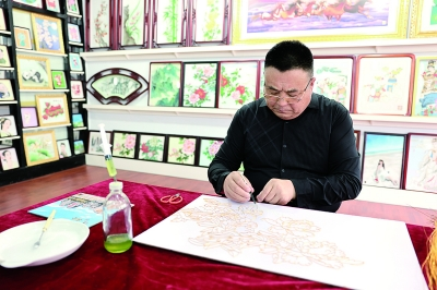 “政府牽線搭橋,我們免費(fèi)提供原材料,群眾零成本制作,在不耽誤農(nóng)活的情況下,每天利用閑暇時(shí)間制作砂畫,不但拓寬了群眾的增收渠道,還為鄉(xiāng)村振興作出了貢獻(xiàn),并很好地傳承了優(yōu)秀傳統(tǒng)文化。”鄭鐵軍介紹。