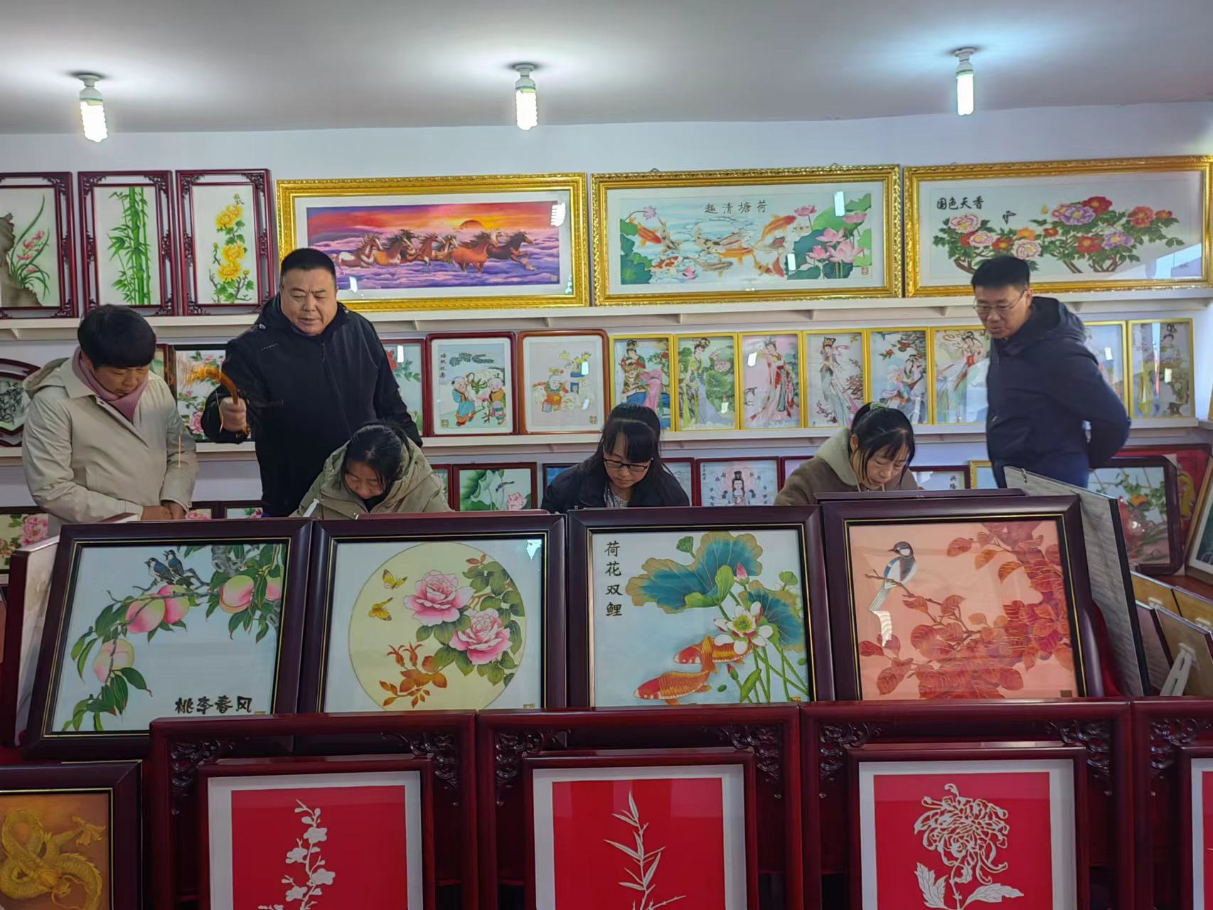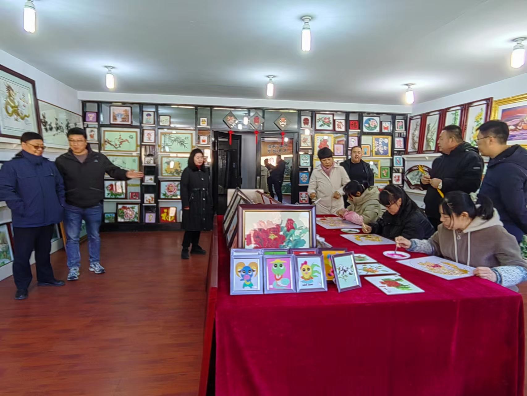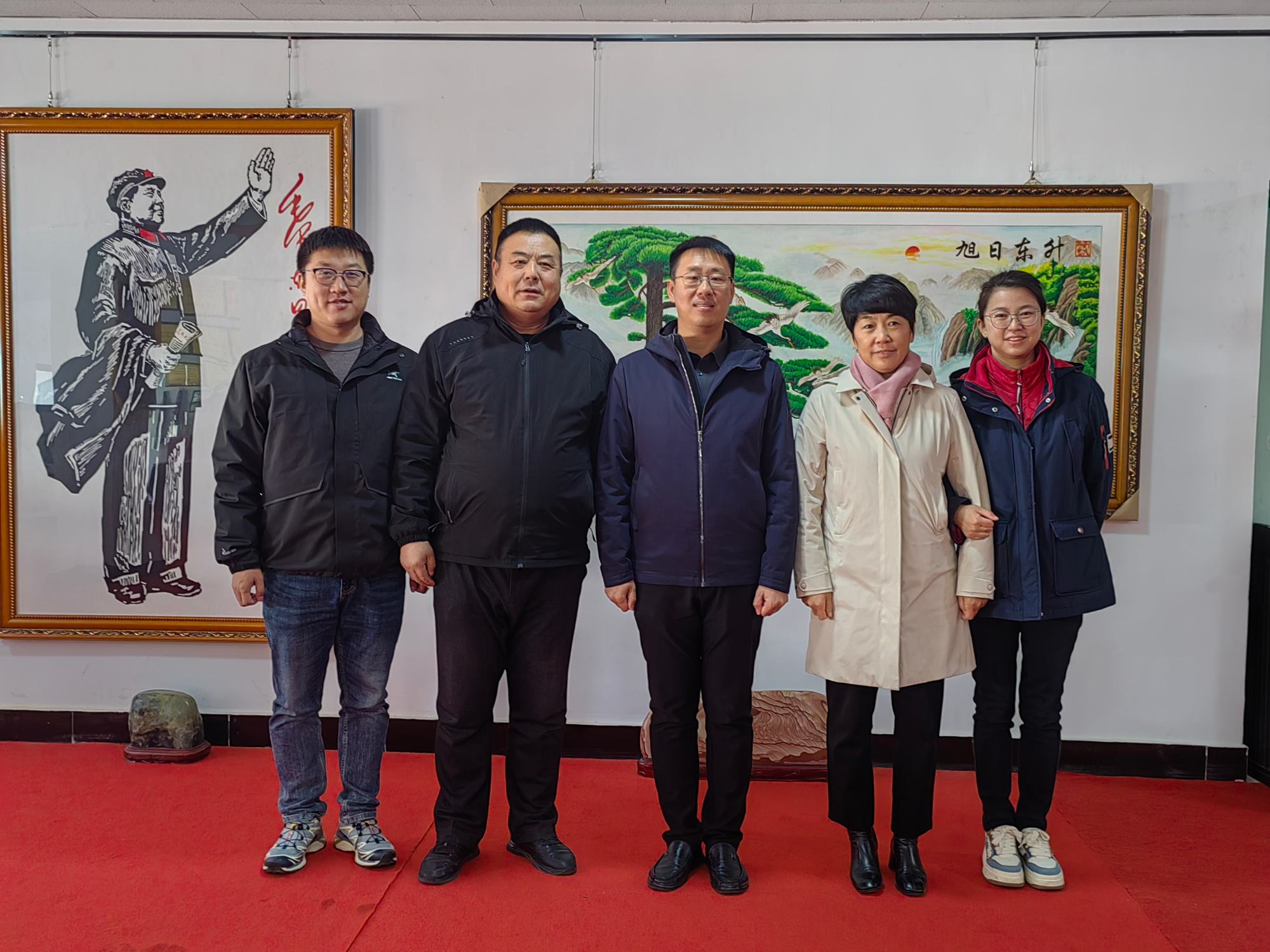參觀結(jié)束后領(lǐng)導(dǎo)們與鄭鐵軍董事長(zhǎng)在展廳《旭日東升》畫作前合影留念。