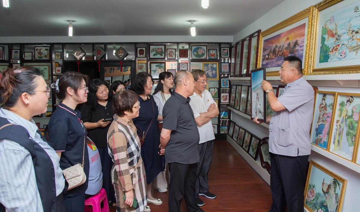 在鄭氏砂藝總經(jīng)理鄭鐵軍的引領(lǐng)下,參觀人員先后參觀了鄭氏砂藝非遺傳承基地和創(chuàng)新研發(fā)車間等工作場所,鄭總詳細介紹了公司發(fā)展歷程、非遺傳承成果及黨建引領(lǐng)經(jīng)驗,強調(diào)黨紀要求如何融入企業(yè)管理黨員參觀了公司展覽館,欣賞了各類砂畫作品,感受非遺魅力。