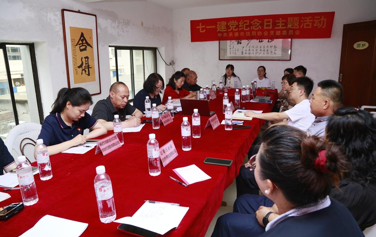 隨后,市信用協(xié)會黨支部開展了黨建交流環(huán)節(jié)。主持人王一然開場闡述建黨節(jié)意義及活動主題,鄭氏砂藝工會主席張國新分享企業(yè)發(fā)展成果。全體人員集中學習了2025年“七一”前夕中央重要會議精神,聚焦全面從嚴治黨、高質(zhì)量發(fā)展和誠信建設(shè)。緊接著,承德市信用協(xié)會黨支部書記高燕領(lǐng)誓,全體黨員重溫入黨誓詞,莊嚴承諾“為共產(chǎn)主義奮斗終身”。理事單位代表逐一介紹自身情況,豐寧順達礦業(yè)集團副總經(jīng)理武鳳寶、興隆縣工商聯(lián)秘書長丁小虎及信用協(xié)會顧問初海云分別發(fā)表講話。